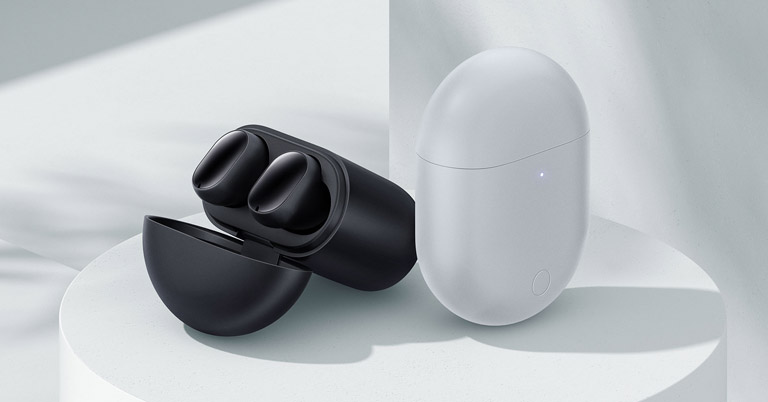 AirDots 3 Pro comes in an oval-shaped charging case, which has an LED indicator light on the front. There are two colors to choose from – Black and White. As expected, the earbuds inside match the color of the case. The design is a continuity of what we have seen on earlier entries in the AirDots lineup.