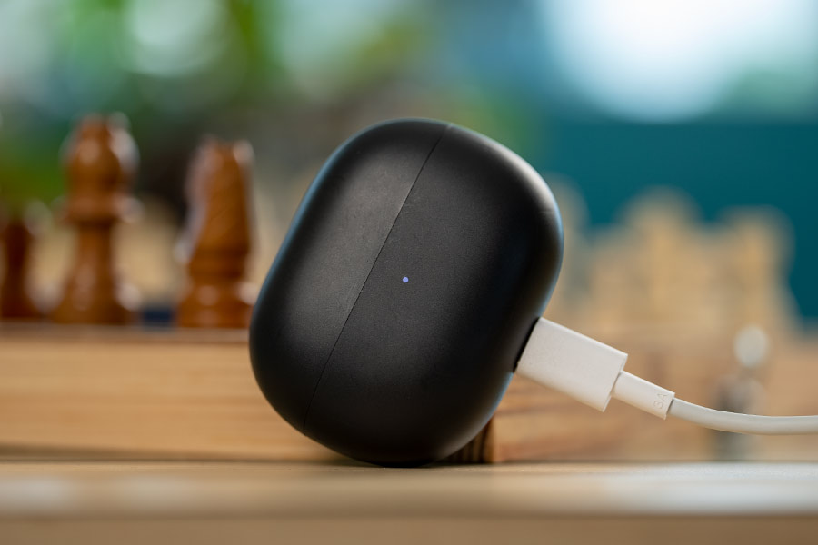 The elliptical shape of the charging case looks quite familiar. It is an all-plastic build which makes it prone to scratches. Fortunately, they are quite visible because of the matte black finish on top. The overall build quality is good for the price. In addition, the case is light and portable as well.