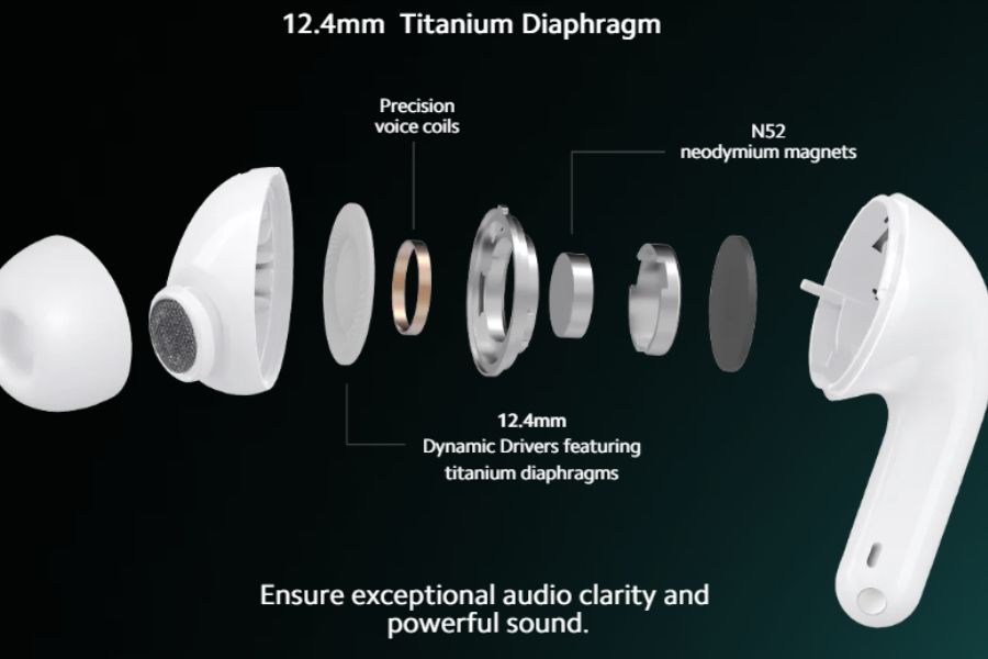 Blasting the audio here is 12.4mm Dynamic Titanium drivers with a 20Hz to 20KHz frequency range. There are 5 sound profiles altogether to choose from as per your preference. As for the codecs, it covers both SBC and AAC while you get three modes to adjust the ambient noise: Normal Mode, Transparency Mode, and ANC Mode. And talking of the latter, the Redmi Buds 5C can cancel up to 40 decibels of ambient noise.