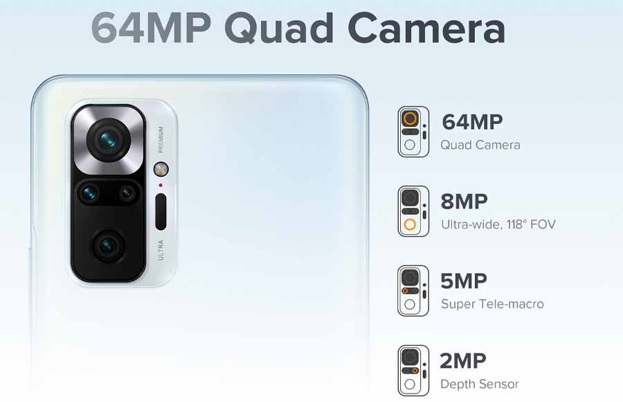 Back Camera: 64MP primary lens (Samsung GW3 sensor), 8MP ultra-wide sensor, 2MP depth sensor, 5MP super macro camera (2x telephoto) [Note: 108MP primary camera on the Nepali variant]