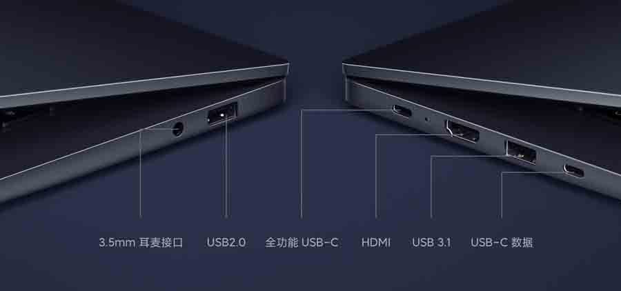 Ports: 2 x Type-C ports, 1 x USB 3.1 Gen 1, 1 x USB 2.0 1 x HDMI 1.4 port, 1 x 3.5mm headphone jack