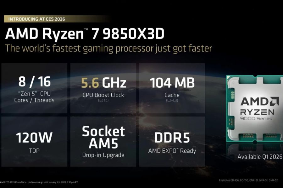 AMD just had their keynote at CES 2026, where they announced and launched a bunch of new exciting products, including the Ryzen 7 9850X3D CPU, which is a higher-binned version of the most loved and popular 9800X3D gaming CPU. So, yeah, in this article, I will discuss everything that you need to know about the Ryzen 7 9850X3D gaming CPU, including its price and specs.