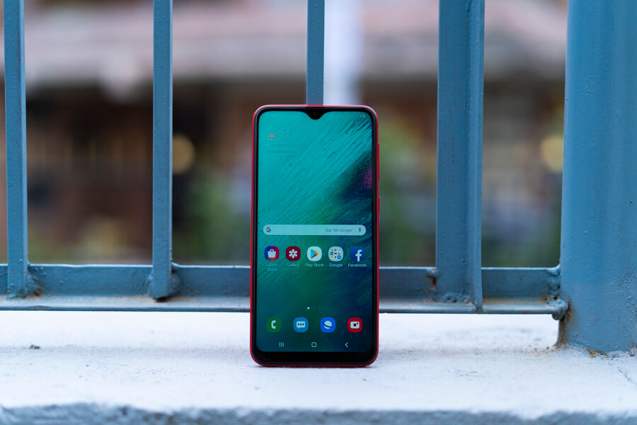 The A10 here is a bit more expensive than the Galaxy M10 and is a bit more toned up. Still, you can tell it’s your typical budget phone just by looking at its shiny plastic body. It does seem well-built but feels cheap in the hands. Of course, that is to be expected from a phone that costs so less.Display