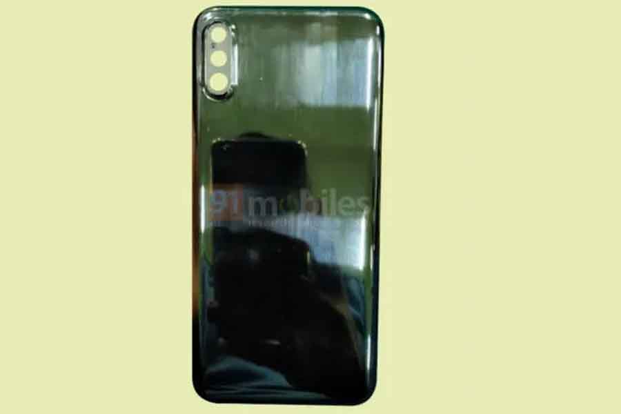 On the back, there is a triple camera setup. The 13MP primary sensor which will be accompanied by a 5MP ultra-wide sensor and a 2MP depth sensor. The LED flash is on the right side of the camera arrangement. There is an 8MP sensor on the front for selfies. We can also see the fingerprint sensor mounted on the back.
