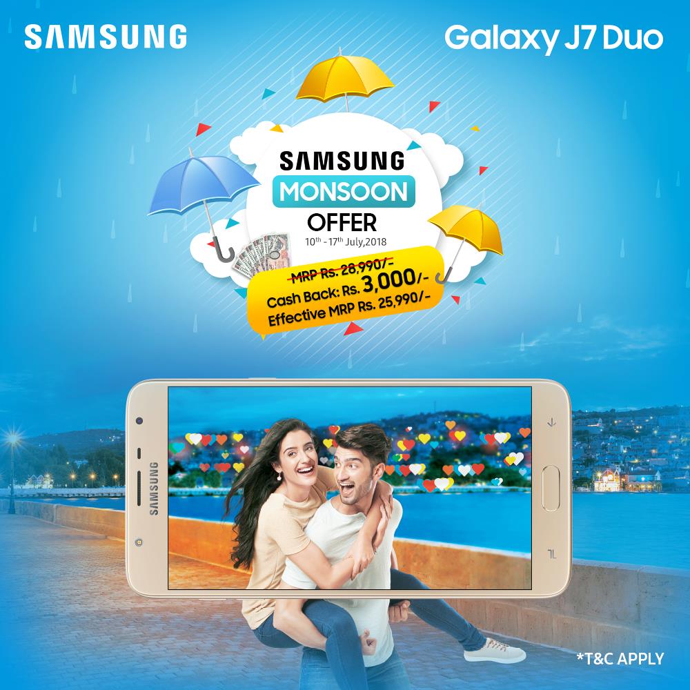 Monsoon Offer alert!! Get Rs.3000 back on purchase of Samsung Galaxy J7 Duo!