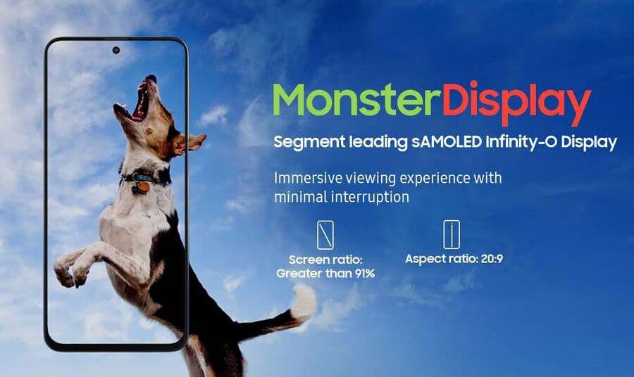 Display: 6.5-inches "Infinity-O" Super AMOLED panel; 405PPI; 420 nits peak brightness; >91% screen-to-body ratio