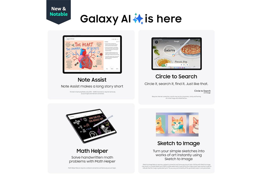 AI Features: Galaxy AI Assistant, Circle to Search, Sketch to Image, Note Assist