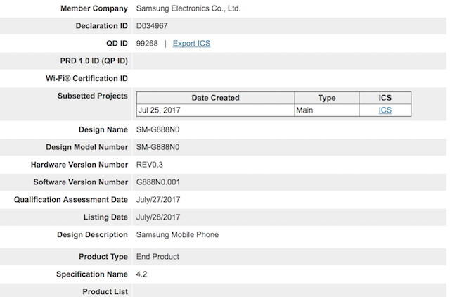 The phone with model number SM-G888N0, presumably the Galaxy X has been certified by the Bluetooth SIG (a body that certifies Bluetooth on devices). The same device has also received it's Wi-Fi certification, hinting towards an even closer release.