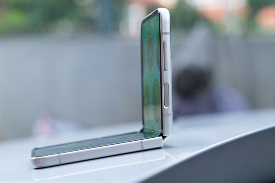 On the battery front, Samsung has fitted a dual-cell battery here. The top half of the phone encompasses a comparatively smaller 930mAh cell, while the bottom half houses a bigger 2370mAh cell. This totals to a 3300mAh battery, which is the same capacity as on last year’s Z Flip.