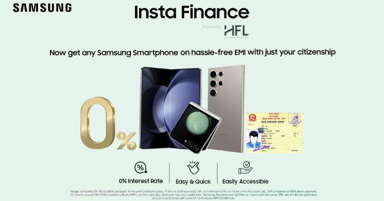 Samsung phones are highly in demand all across the board, from their top-of-the-line flagship Galaxy S24 Ultra to their budget offering Galaxy A15! The case isn't any different in Nepal either with high amounts of pre-bookings for their latest offering. Given its popularity, Samsung is trying to reach out to even more consumers with its Insta Finance service!