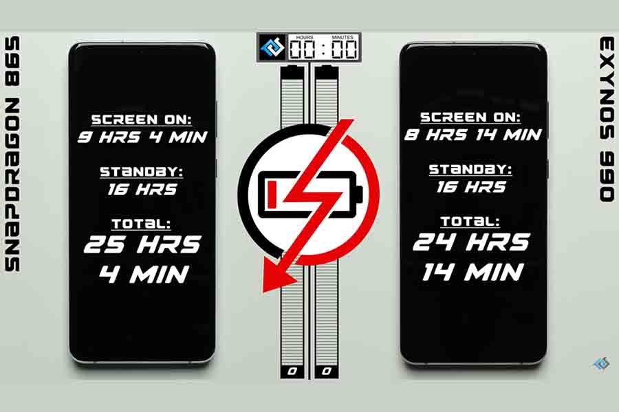 In the battery test, both devices were put through some predetermined task under similar settings. The Snapdragon made a lead from the first task that involved an hour-long call. Though Exynos performed better in the mailing task, it never made a comeback. Snapdragon variant retained the battery better while browsing the internet, scrolling through Instagram, gaming, and in the 16hour standby test. Exynos seemed to perform well in the YouTube streaming test but that it was it. It was clear that the Snapdragon variant had a better battery endurance overall.