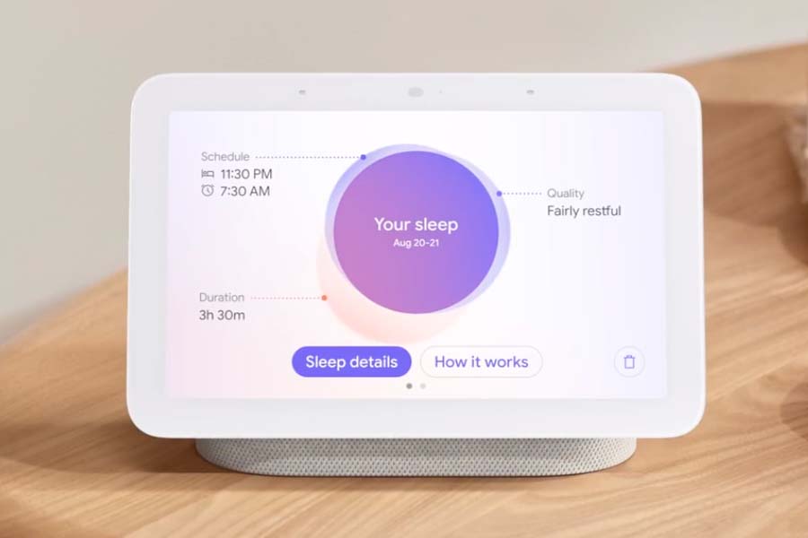 The data collected this way can be shared with Google Fit. Also, the Nest Hub can provide personalized bedtime schedules, suggestions based on your sleeping habits, and guidance from the American Academy of Sleep Medicine.
