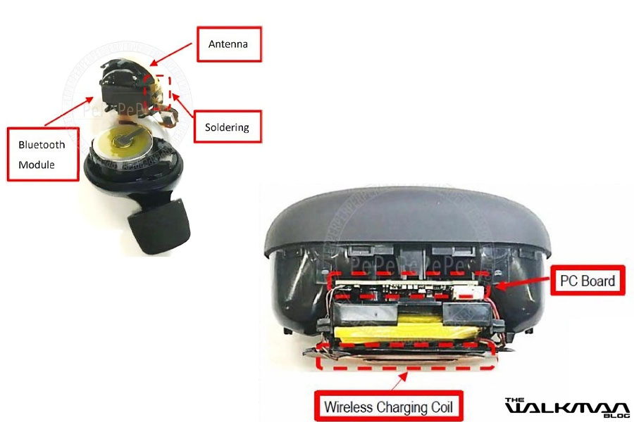 The certification also included some case teardown photos, primarily of the main PCB. We can see that the wireless charging standard will be Qi again. And unlike the WF-1000XM4, its battery will be soldered to the PCB (printed circuit board). But the wireless charging coil won't be soldered.