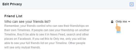 4. A pop-up will appear now. On the Friendslist option, Select Only Me Option and Select Done.