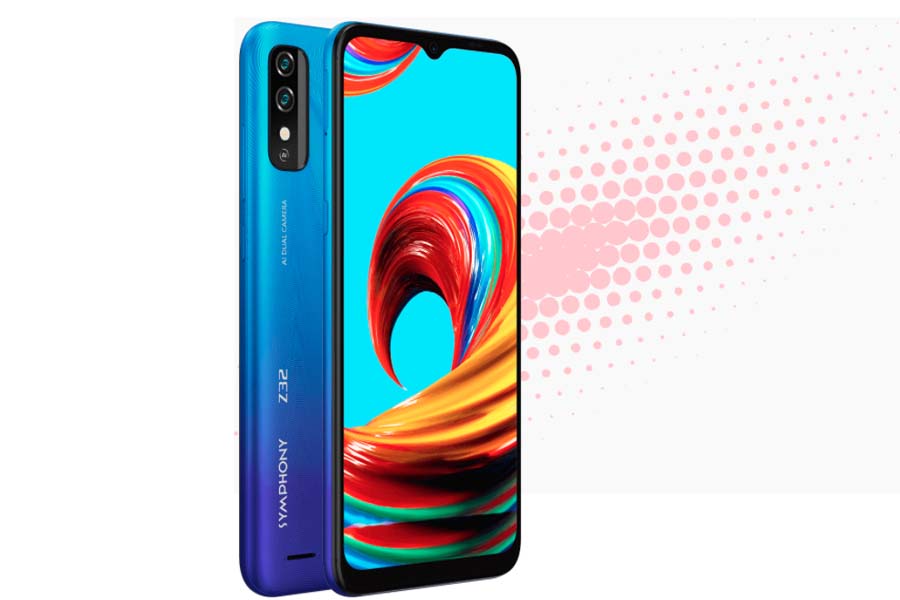 Symphony Z32 features a 6.52-inch HD+ with a V-shaped notch for the 5MP front-facing camera. At the back, there is a pills-shaped module enclosing the 13MP + 2MP dual-camera setup.