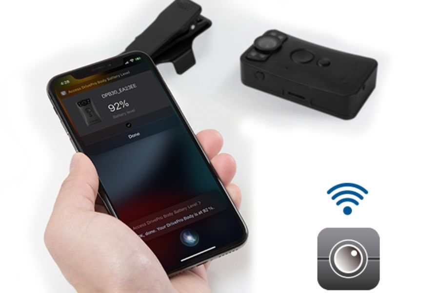 The DrivePro Body 30 relies on Bluetooth and WiFi for wireless connectivity. You can connect this body camera on both Android and iOS phones, using the DrivePro Body app. As the camera doesn't have a display interface, the app lets you do real-time viewing and tweak the settings as per your preferences.