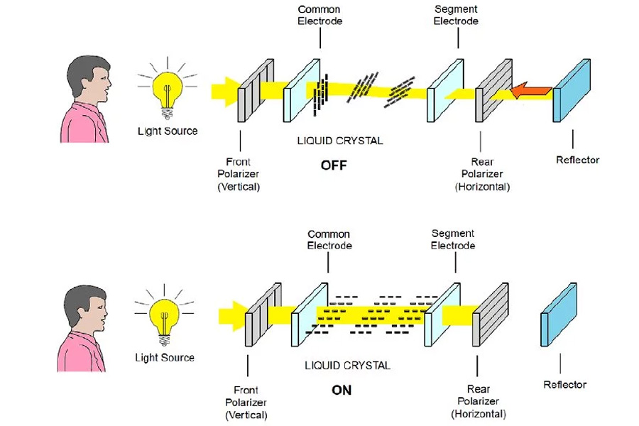 The LCD panels have small liquid crystals in them. These kinds of crystals rotate the polarized light, which appears on the screen. As LCD is incapable of producing its own light, a backlight is used to light each pixel, which is switched on and off electronically for each new frame. As an external light source is used to light the pixel, you can notice uneven brightness on some occasions. Unless you are really, and I mean really tight on budget, going for an LCD TV in 2019 is not a good idea since it comes bearing problems like poor contrast ratio, constrained viewing angle, limited response rate, and many more.![LCD screen working principle [Credit: electroSome.com]](https://media.gadgetbytenepal.com/2020/02/How-an-LCD-screen-works.jpg)