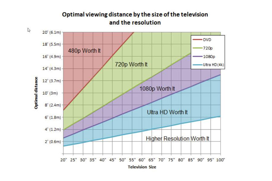 But whatever the resolution and size of the TV, you will ultimately start to notice some pixelation if you watch the screen from a close distance. For that reason, make sure you maintain a proper distance (or retina distance) with the TV. Here, the need for properly determining the TV size according to the room comes into factor as well. There’s a commonly accepted standard viewing distance for different sizes of the TV with different resolutions.