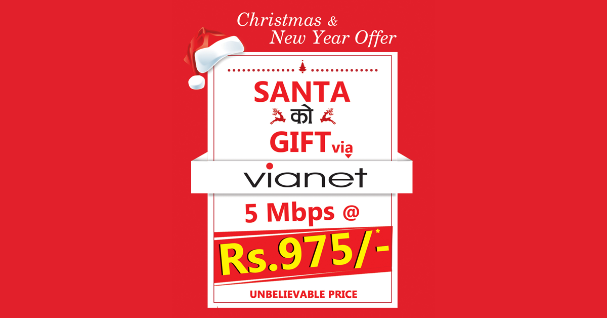 When a festival session arrives, it brings much joy and happiness along with remarkable offers from different service providers. When it comes to festive offers and discounts, the internet service providers always come on top. Vianet, one of the internet service providers in Nepal that provide Fiber-To-The-Home (FTTH) service all around Kathmandu, Bhaktapur, and Lalitpur, has launched its "Santa ko Gift via Vianet" festive offer on the occasion of upcoming Christmas and New year.
