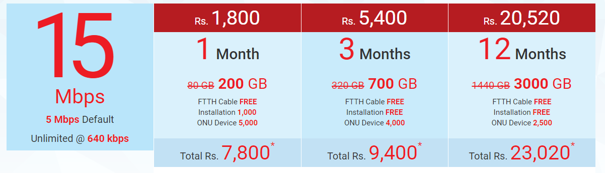 This is a perfect deal even for heavy torrent downloaders out there as 200GB of monthly data should be more than enough. 200GB of data means you get to spend around 7GB on a daily basis which is ample in our opinion. Even if your data runs out, you will be greeted with 640kbps speed for the remaining days. If you want to save some bucks on installation and ONU device, we suggest you get the yearly plan since this scheme is deprived of installation fees and you get 50% off on ONU device.