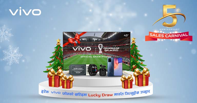 Like clockwork, Vivo Nepal is back with its annual sales carnival. The fifth edition of Vivo's sales carnival will span from December 1 to December 31. And under this, customers get a chance to win big prizes including a 43" Videocon Smart TV, discounts on Vivo phones, and more.