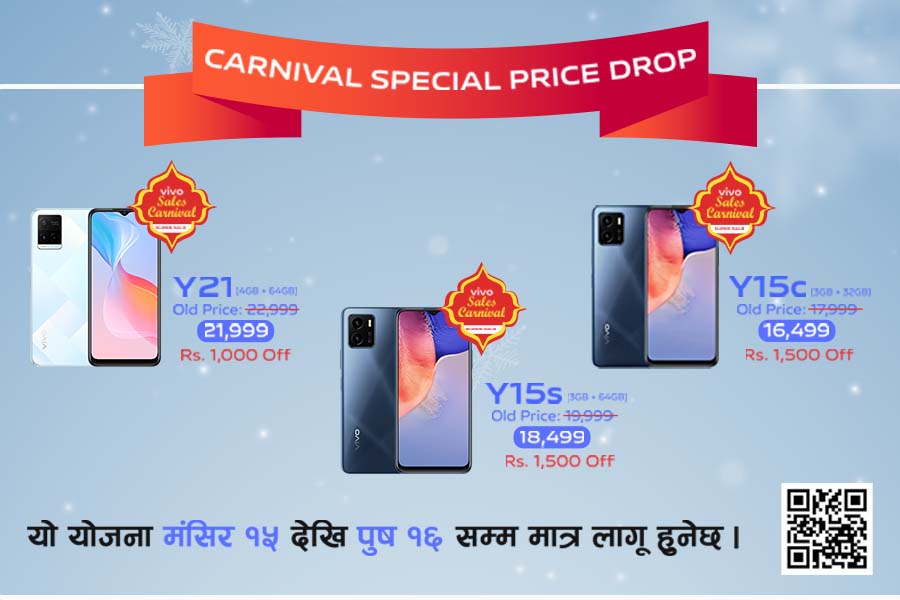 To participate, you must register your phone at "vivodashain.com" or simply scan the QR code in the image above. As always, winners will be decided via a lucky draw. You can keep up with the Vivo Sales Carnival through the company's social media platforms (Facebook, Instagram) or through Vivo-authorized retail stores across Nepal.