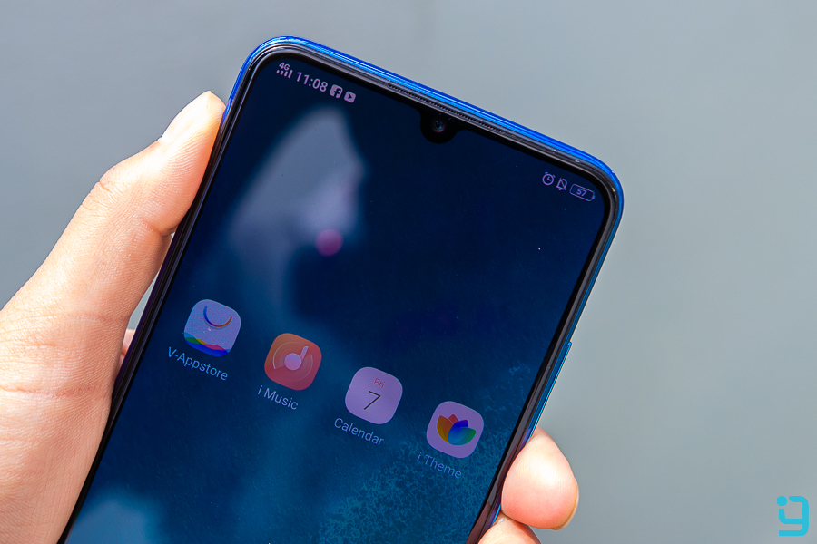 The screen is a large 6.41” with a 19.5:9 aspect ratio. There’s a small water-drop or a tear-drop notch (whichever you like to call it) on top that houses the selfie camera. The front speakers are also located right above the selfie camera, and that design is cleverly minimalistic. But one thing that you need to know is that you cannot hide the notch in the settings. It is there to stay. But even with the small notch, the arrangement of the notification and information stats is kinda haywire. It’s not very well organized to fit all your notification icons.
