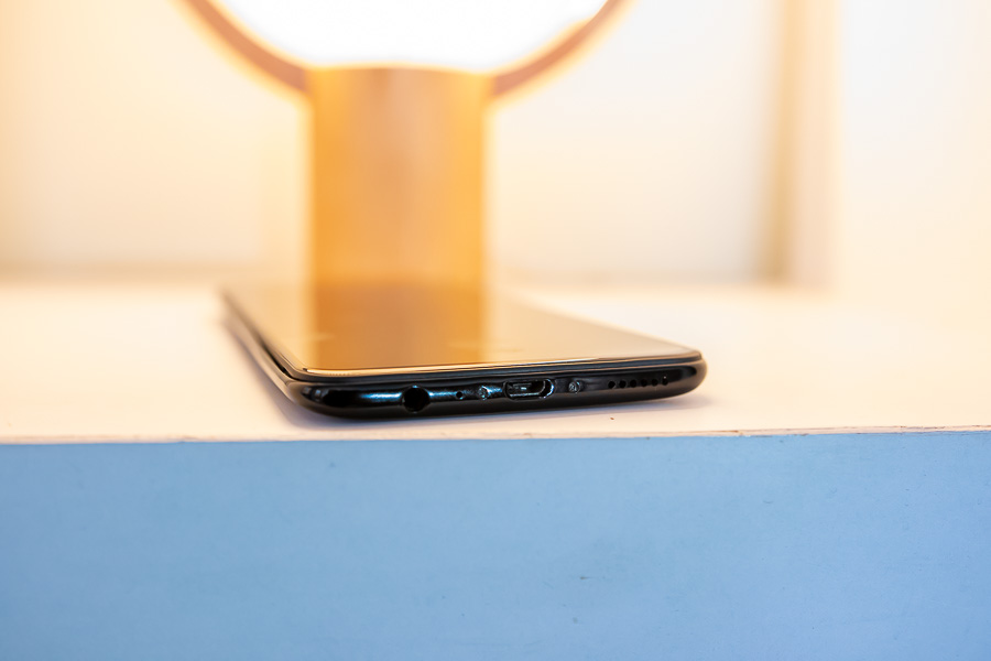 Back to the design, the phone is quite big in size, but it is slim. Still…one handed usage is difficult. All the buttons are on the right, and the bottom houses a single speaker, a 3.5mm headphone jack – which feels like a bliss in 2018, and a microUSB port. The fingerprint sensor is embedded in the display itself, and while that may make the phone appear futuristic, the microUSB feels silly, and that too, on a premium mid-ranger device! Of course, it is a cost cutting decision, but it doesn't feel right in the final stages of 2018.