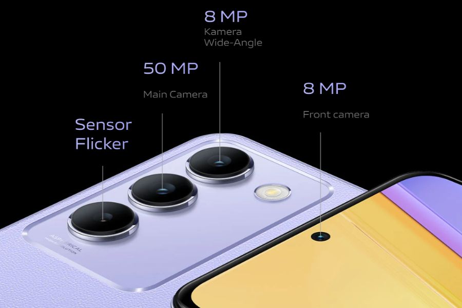 The new Vivo Y100 comes in two colourways and two finishes. The first of which is in “Purple Orchid” colour with leather finish. Meanwhile, the other one is a “Black Onyx” finish that comes in a gritty texture with kite-shaped patterns on the back. Other than that, the phone has the same design blueprint with a large rounded-rectangular camera island housing three camera cutouts and an LED flash. Both the variants boast an IP54 water and dust resistance.