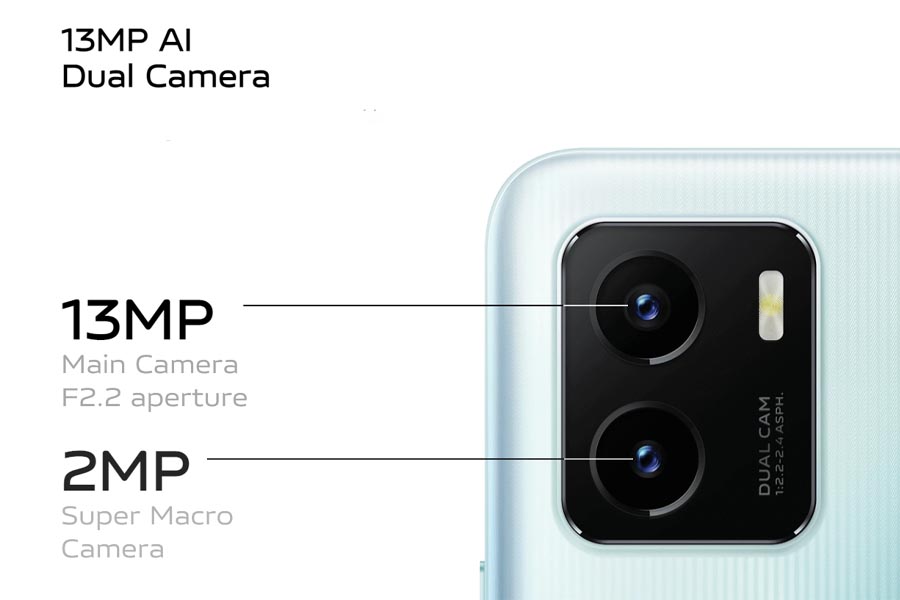 As for the optics, there's a dual-camera arrangement at the back led by a 13MP primary lens. Accompanying this is a 2MP macro sensor. On the front, the phone has an 8MP sensor for selfies and video calls.