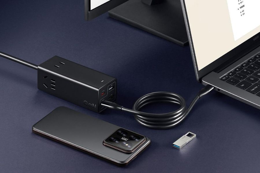This socket utilises Gallium Nitride (GaN) allowing it to maintain a slim profile while also being more efficient than traditional silicon sockets. Moreover, you get a 0.9-metre full-function data cable with front as well as rear access integrated into the whole thing.