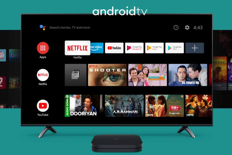 Android TV 9.0 (Pie) with access to over 5,000 apps and games on the Google Play Store.