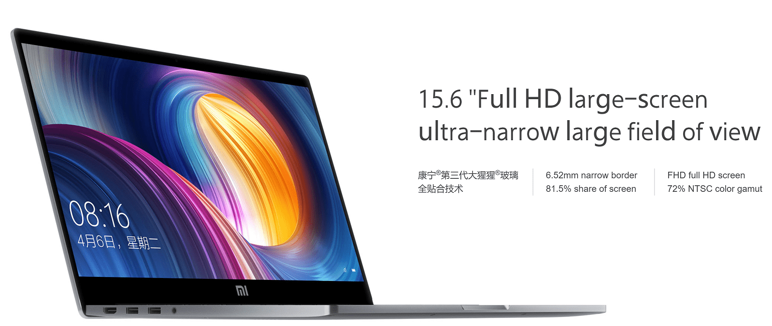 The all-new Mi Notebook Pro features a 15.6-inch full HD glossy display with Corning gorilla glass 3 protection, 82% screen to body ratio, and 72% NTSC color gamut. It comes with the latest 8th Gen processor which is reportedly 40% faster than the 7th gen. For GPU, you get the latest Nvidia’s Geforce MX 150 which goes head to head with last year's high-end GPU's like GTX960M and GTX950M.