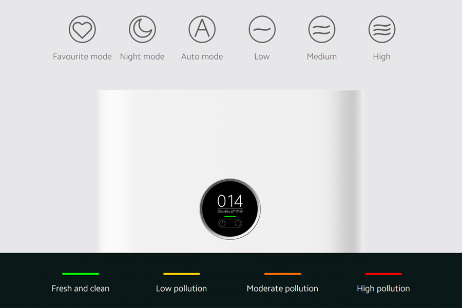 In terms of design, Xiaomi's new air purifiers have the same rectangular shape as their predecessors. There's a circular OLED touch display that displays information such as real-time PM2.5 (Particulate Matter) level, temperature, humidity, and WiFi connection. This button can also be used to switch between modes such as Sleep, Auto, Favourite, Low, Medium, and High.
