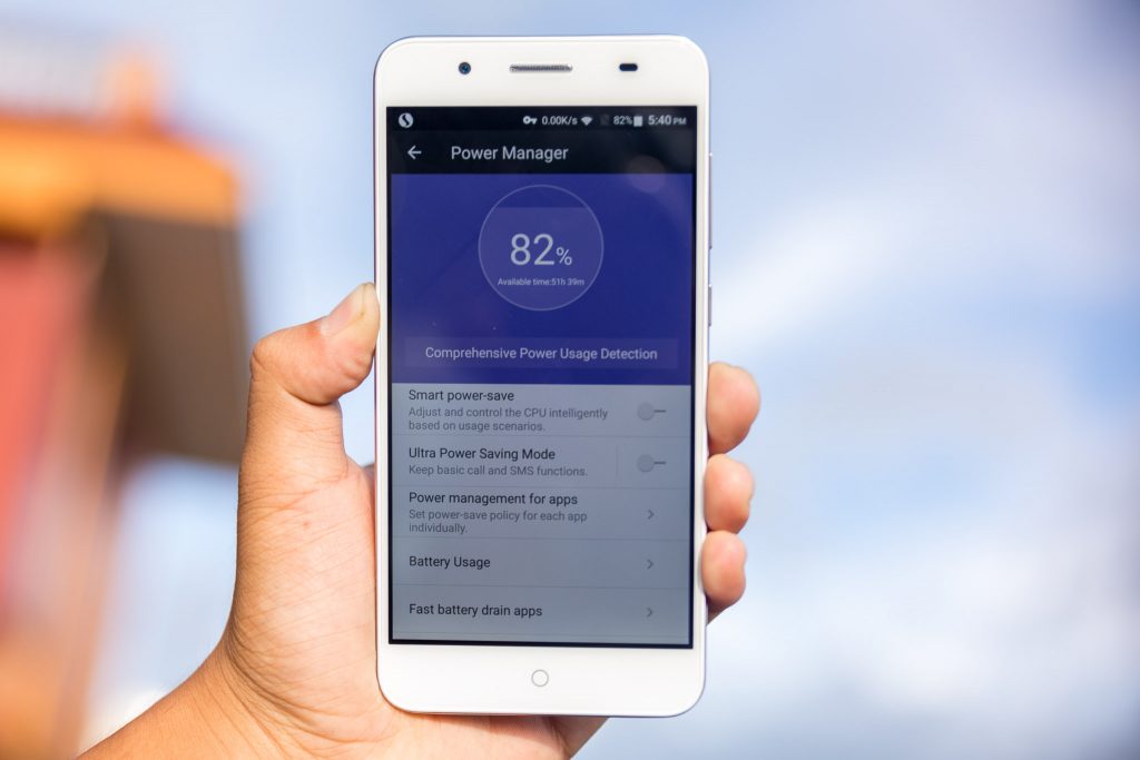 First let’s start off with the feature focus of the phone, which is its massive 5,000mAh battery which has added some heft to it. It’s tagline “More Bigger Battery Larger Endurance” surely justifies the real life durability as well. With normal use, I could easily squeeze two days of battery life and with heavy gaming and frequent use, it lasted me until the end of the day which is what I would generally expect from a battery of this size. The phone comes with a lot of power saving modes if you want to get more out of the massive battery. Also, accompanying the phone is a 5V-1.5A charger which fills up the device within 2 hours 15 minutes give or take.
